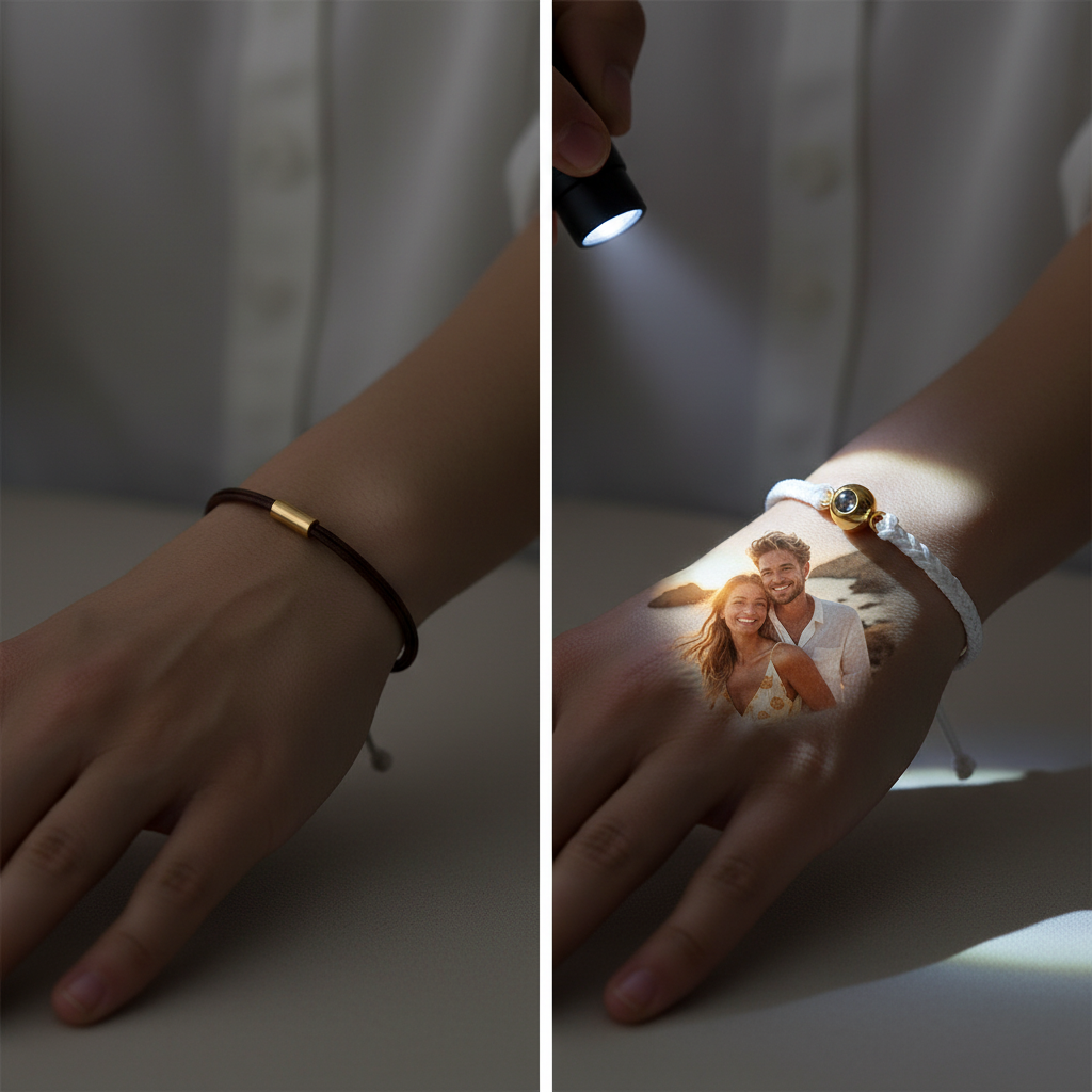 Advanced nanotechnology meets timeless design. Your photo hidden inside projects beautifully when lit. A truly magical keepsake bracelet.